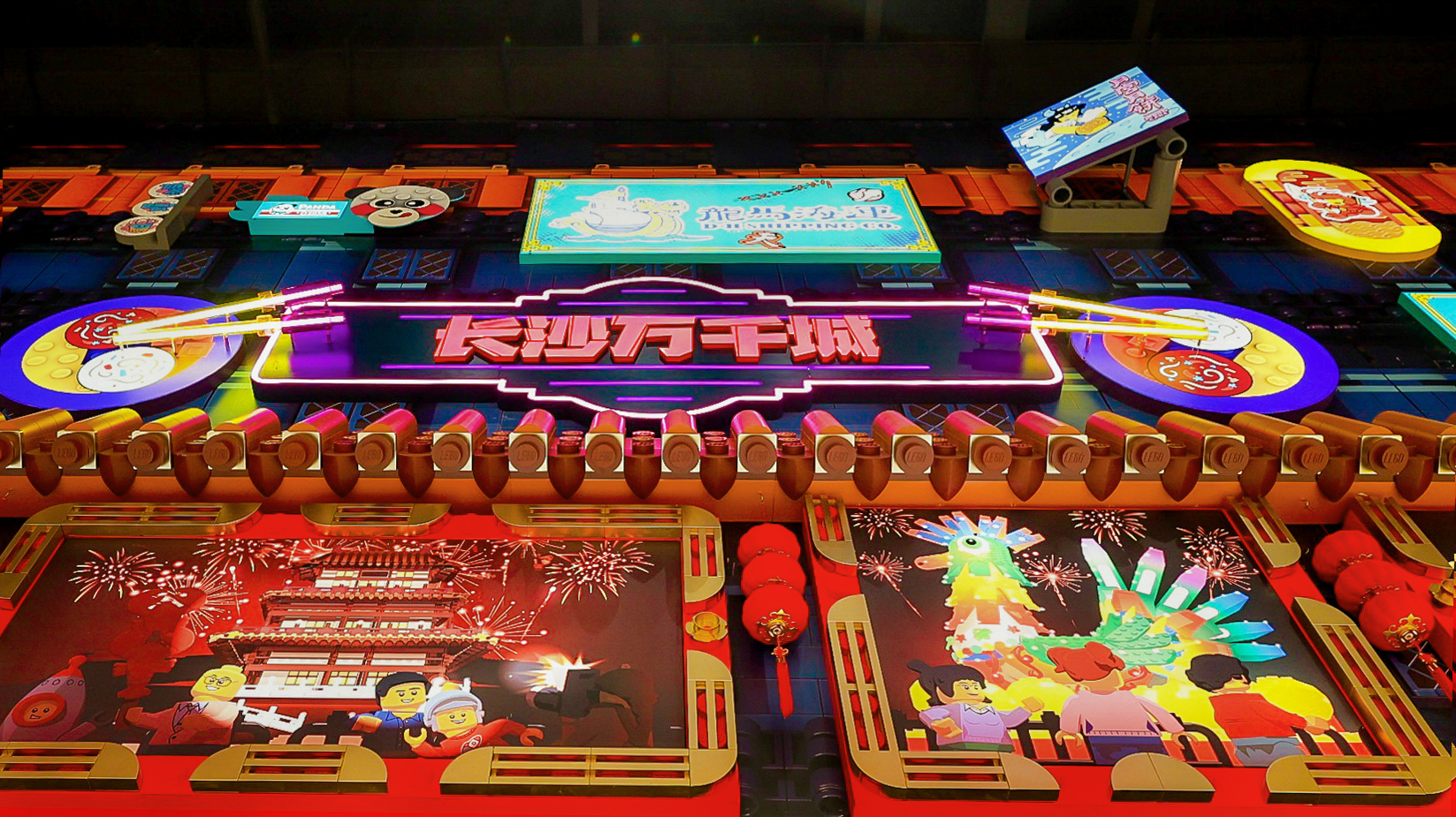 在西安的乐高品牌标杆店,你从店铺门口就能够看到一直延伸到店内的“大唐盛世”主题长廊,它重现了古都西安的前世今生,还有以唐朝公主、文官武将、西安面食为设计灵感的3D乐高人仔模型。而在长沙,这些3D乐高人仔模型则被设计师融入了人们所热衷的奶茶和小龙虾的元素;此外,该店还有一副“市井长巷”为主题的巨型主题墙,还原了这座网红城市的烟火气。