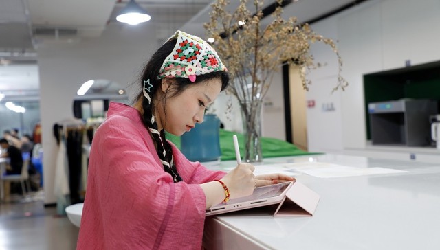 蔡晓彤抱着试一试的想法顺利进入公司,成为一名新中式设计师。自己设计的服饰被人穿在身上的场景,她至今历历在目。