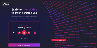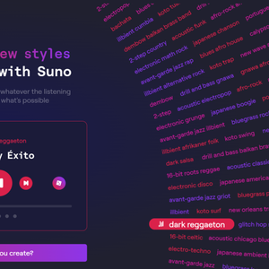 此外,Suno在4月12日的更新中增设了explore(beta)板块。深蓝的页面右侧是密密麻麻各种音乐风格和流派,用户可以滑动鼠标到某一风格,点击左下方的播放按钮就可以探索韩国巴克莱、摇滚西塔琴等新的音乐风格,这进一步增加了Suno的丰富度和可玩性。