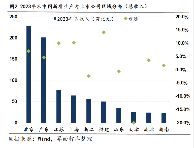 二、新质生产力上市公司总收入:北京、广东居首,内蒙古实现翻倍
