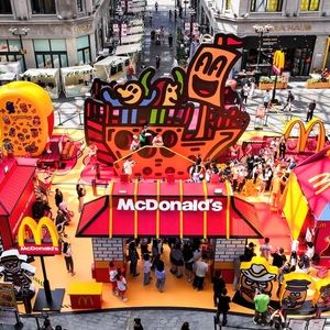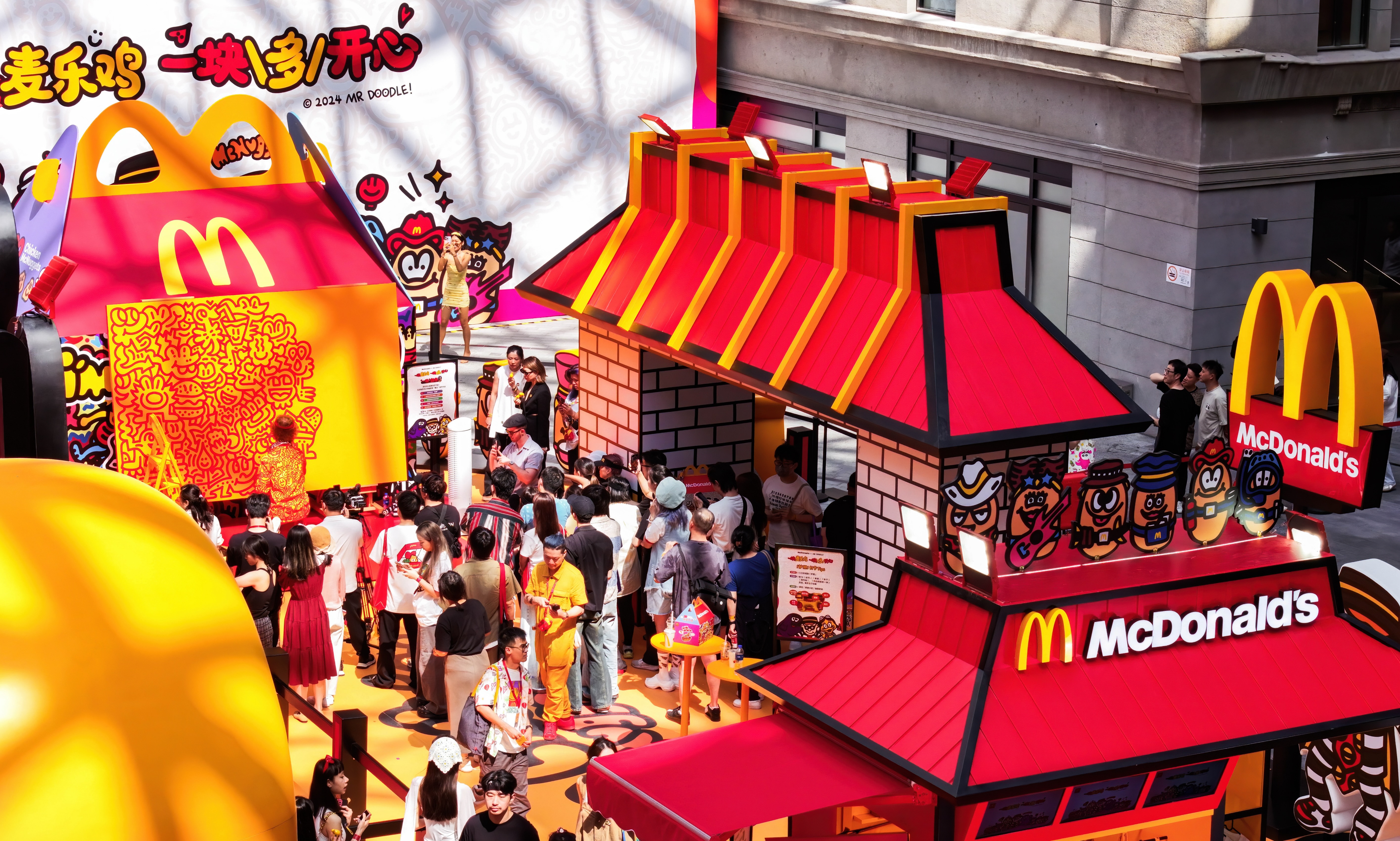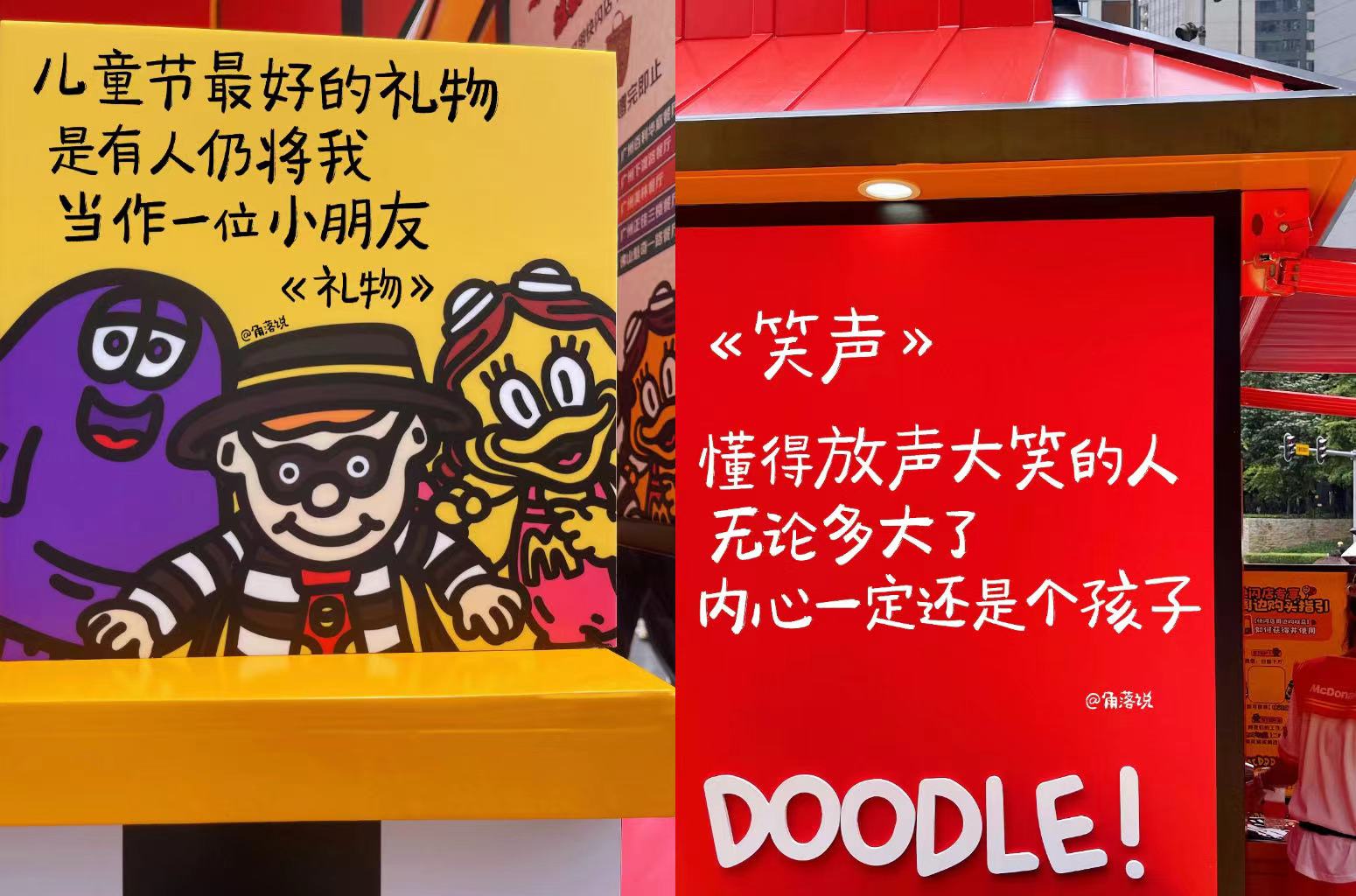 不仅如此,麦当劳还请来了艺术家Mr Doodle(涂鸦先生)围绕经典产品麦乐鸡和麦当劳四小幅形象进行创作,并推出全新艺术家联名系列包装、主题餐厅和快闪装置等活动。这也吸引来诸多年轻人前往打卡,并在小红书等社交平台上分享出片机位和自己抢购到的周边。