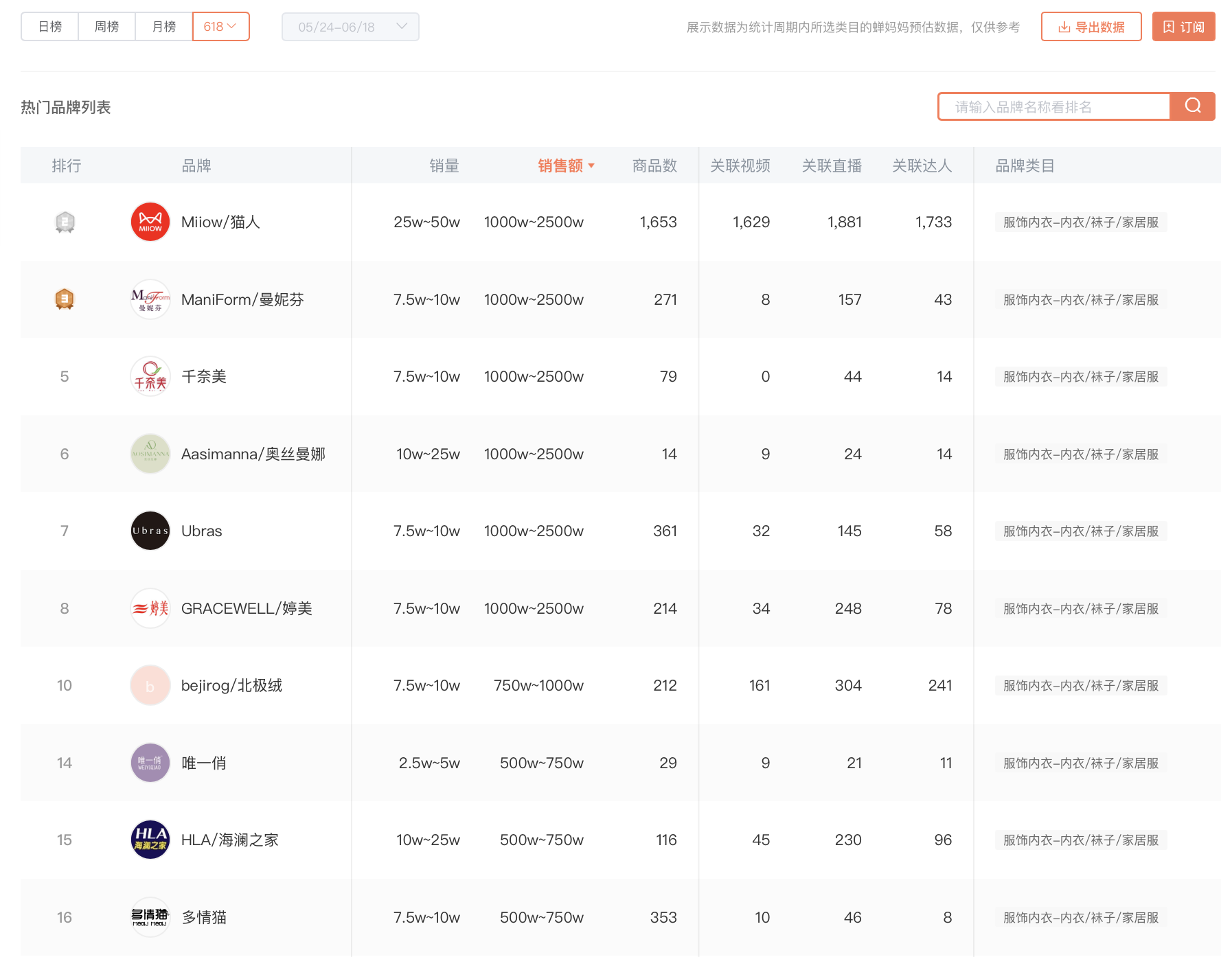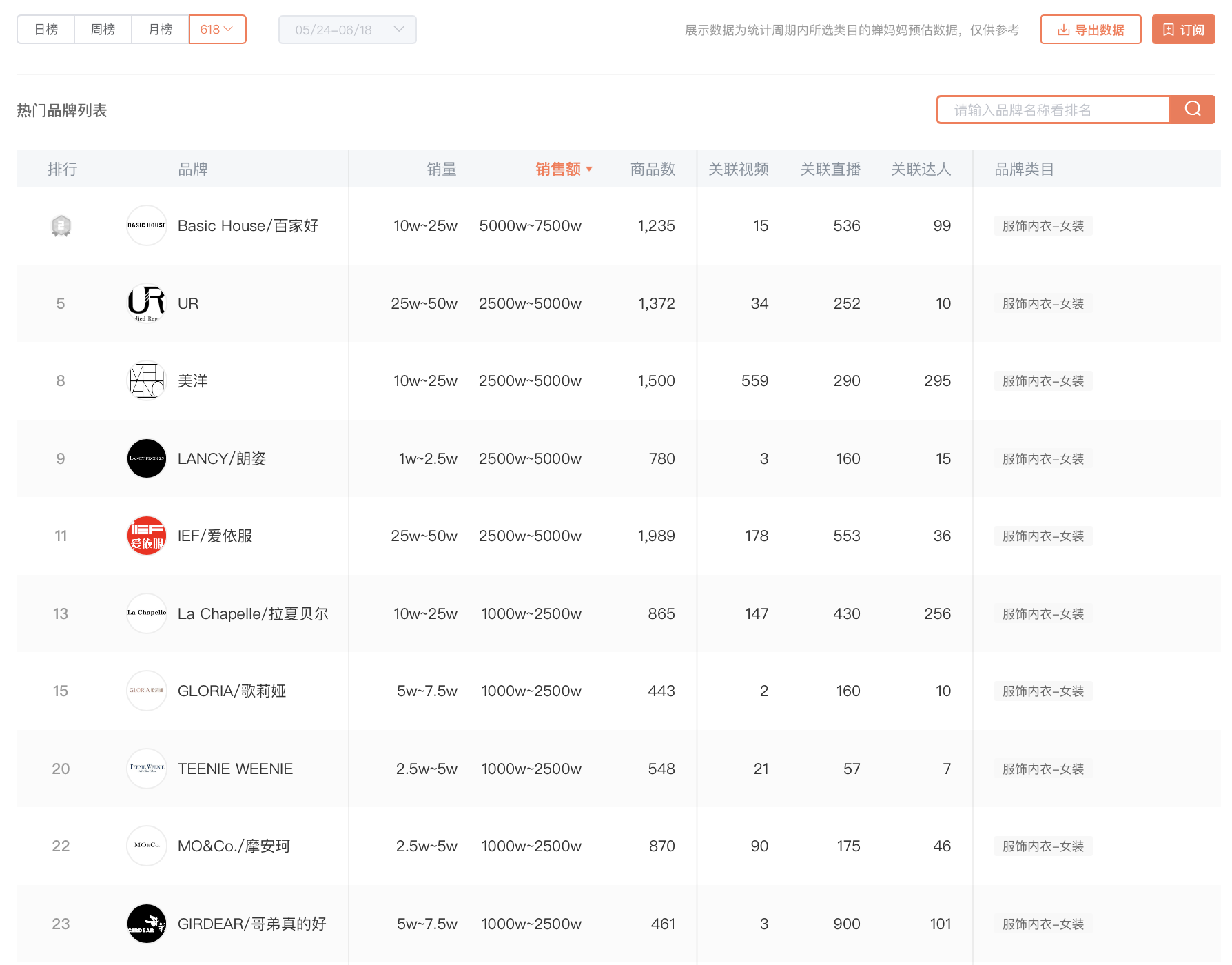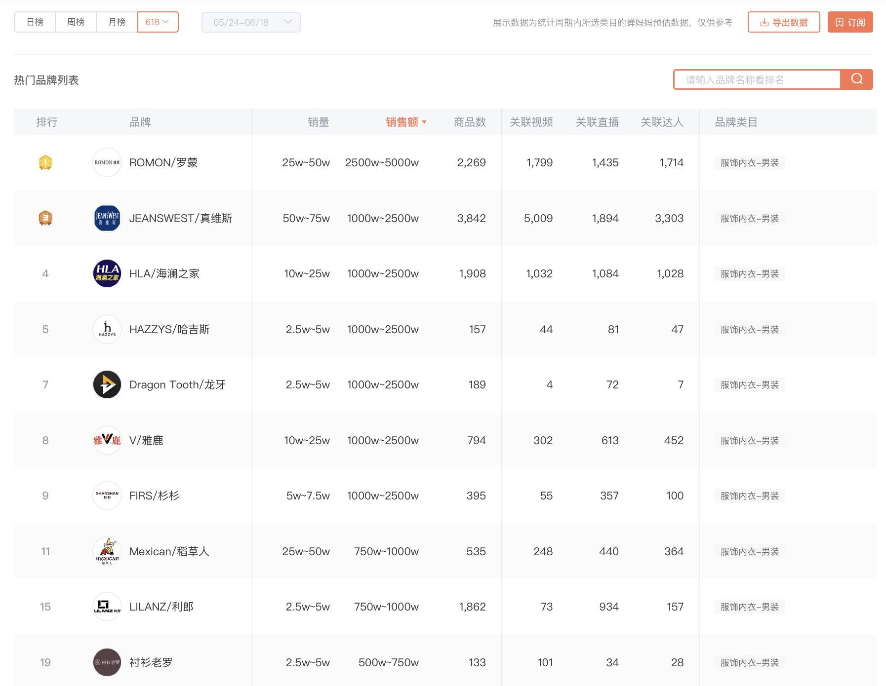 虽然6月还没到,618电商大促的预热期已基本暂告一段落。从各服装品牌在此期间的表现来看,占据头部位置的品牌总体上稳定,但也有一些变化值得留意。