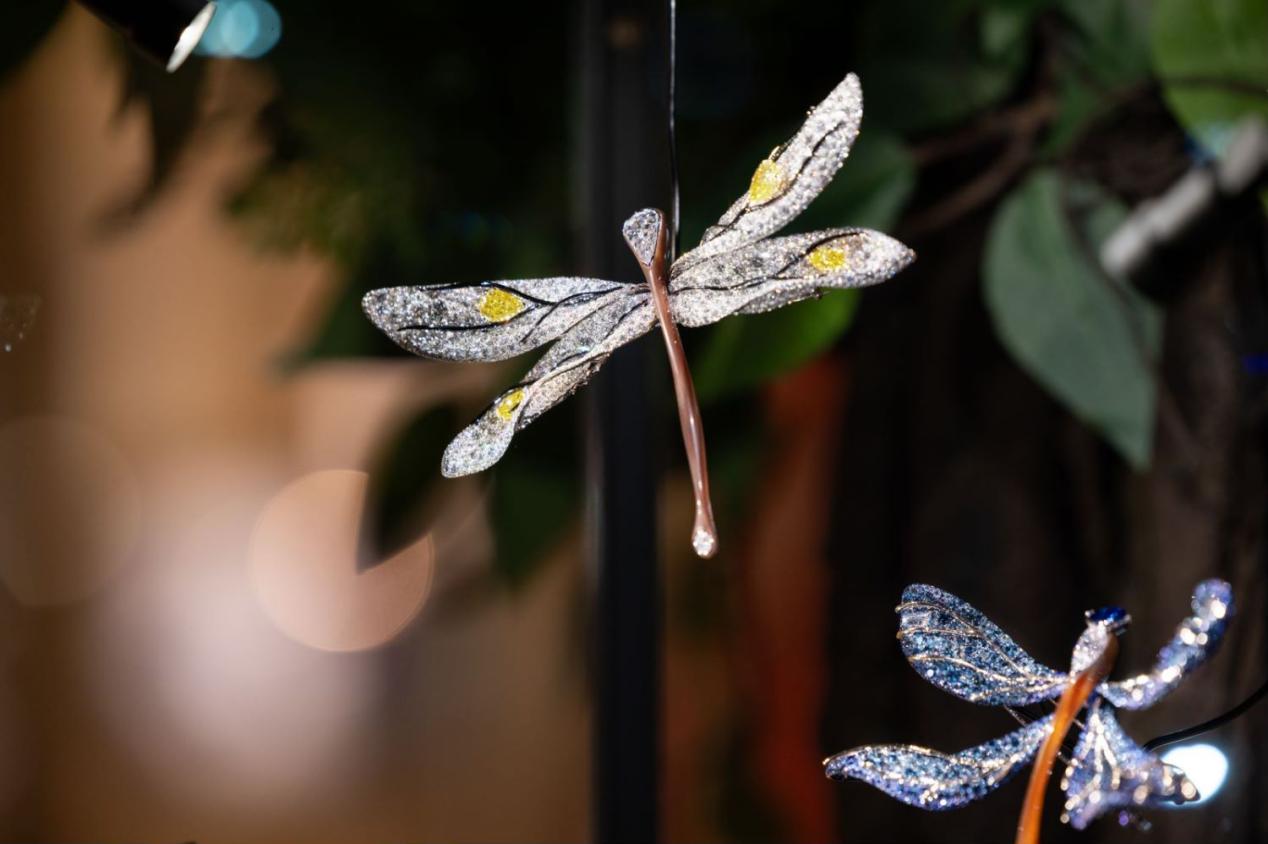 每一个20周年系列蜻蜓胸针的翅膀都各不相同。蜻蜓翅膀在阳光的折射下闪烁着璀璨的光芒,经过阳极导色处理的钛金属呈现出具有丝绒质感的奇幻色彩,不断精进的镶嵌技艺让蜻蜓翅膀轻如薄翼的通透感完美复原。