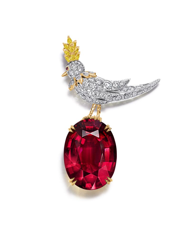 Tiffany & Co.蒂芙尼再度推出五款全新让·史隆伯杰高级珠宝系列Rainbow Bird on a Rock彩虹“石上鸟”作品,以一系列璀璨钻石与彩色宝石,创新演绎品牌传奇设计师让·史隆伯杰(Jean Schlumberger)的经典“石上鸟”胸针。