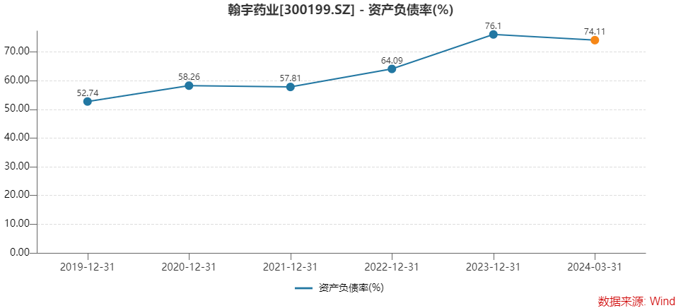业绩堪忧的翰宇药业债务风险已高企。去年报告期末,翰宇药业短期借款、一年内到期的非流动负债合计10.71亿元,较期初增加2.96亿元。同时,公司经营活动产生的现金流量净额为-353.66万元,资产负债率已高达76.1%,较期初增加12.01个百分点。