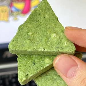 这是一种新型零食,把蔬菜的膳食纤维萃取磨粉,再制成冻干,既保留营养,吃着又方便。