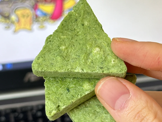 “菜爆了”的外形是三角形,很小巧,口感偏奶味,一盒里有10小袋,卖20块钱,合不到2元钱一袋,品牌宣传“3块就能满足一餐所需”。
