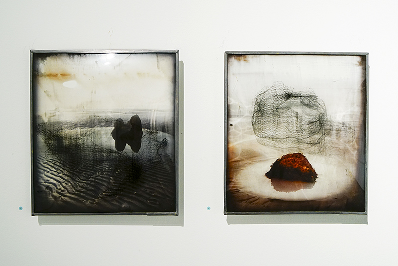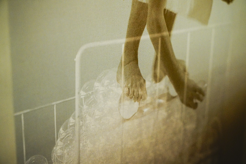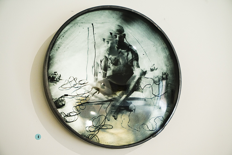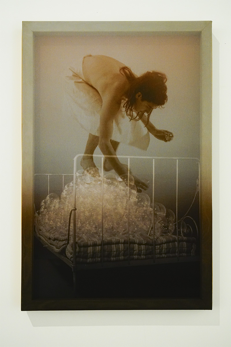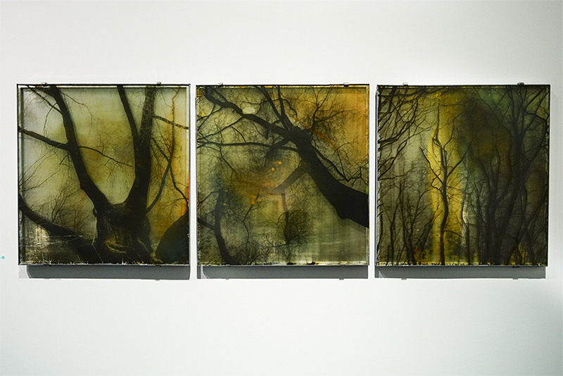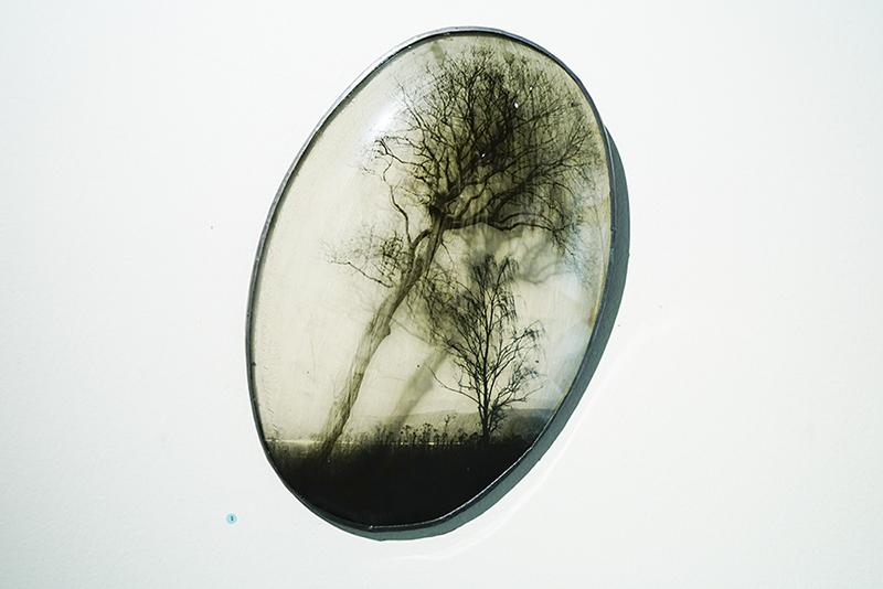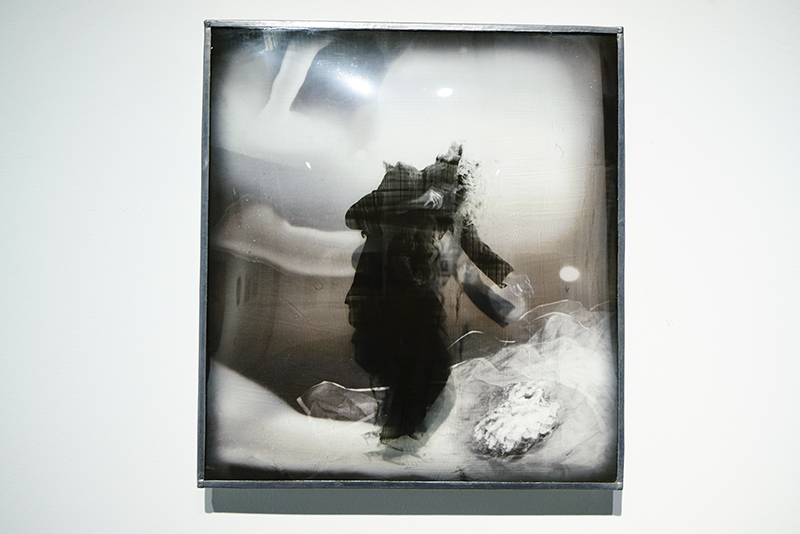 当我们移动脚步来到侧面进行观看时,画面也会随着观看位置的移动而产生微妙的变化。在凸面玻璃上的火棉胶影像变得扭曲,慢慢淡出视线,玻璃背后的影像成为了视觉的主体,仿佛作者在用这不同层次的影像与观者进行对话,演变着她的故事。