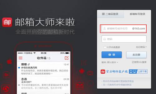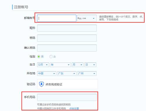 QQ邮箱支持QQ号码、邮箱帐号和手机号码登录方式。对于新注册用户,采用传统的字符组合的注册方式,但是在注册的内容填写中有手机号码的要求(还支持中国大陆地区以外的手机号码)。这实际上也是获取到了用户的手机号码信息。
