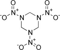 RDX是一种“氮炸药”,顾名思义其爆炸性能全都来源于很多氮氮键,而不是氧原子。这种氮键极不稳定,因为氮原子一向倾向于结成氮氮三键的氮气分子。分子团中所含的氮氮键数量越多,就越易爆炸,正如RDX一样。