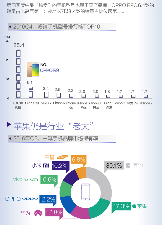 【图解】国产手机销量大涨 仍无法撼动苹果地位