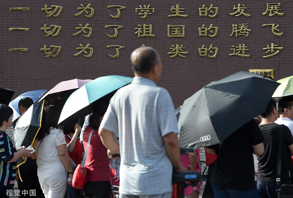 按:没有什么能像高考一样吸引全国民众的关注。每年夏天,网民们都在社交媒体上发布高考主题的图文以博得热度,例如2017年以“高考”为名的虚构电影海报,背景中是一群面容严肃的青少年。每到考试那几日,各地政府都会实施专项政策帮助考生家庭。高考前几天,《北京晚报》用大约5个版面的篇幅刊登了政府对高考家庭的支持政策,包括允许考生家长的车在考试日占用警车车位,可能赶不到考场时请警方帮忙疏导交通。报纸版面的各个角落写满了关于照顾考生的贴士,例如专家建议提前60~90分钟吃早餐。考试当天,每个考场都配备救护车和安保人员。考生须出示准考证进入考场,焦虑的父母和心忧的老师们被拦在外面。每年这两天,考场附近的道路戒严,人流量大幅上升。尽管如此,附近居民似乎并不感到困扰,还竖起大型标志,提醒人们保持安静,以免打扰考生。