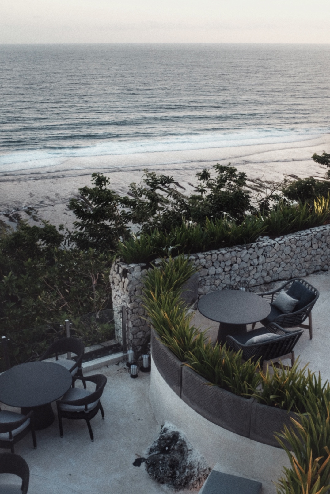 Oliverra 悬崖餐厅是此行体验的 Fine Dinning,老实说,一开始我对此并没有太多期待,不过主厨的呈现给了许多惊喜,完全配得上一家奢华酒店该有的精致餐饮水准。餐厅整体设计有些许地中海度假风,很多弧形和壁龛的设计让人仿佛置身悬崖边,石色的暖白色调也让窗外落日的余辉之美更上了一个台阶。出品方面,主厨融合了巴厘岛当地特色与传统欧陆菜色,还选用了很多本地食材,很好的灌输了 Farm to Table 的环保理念。