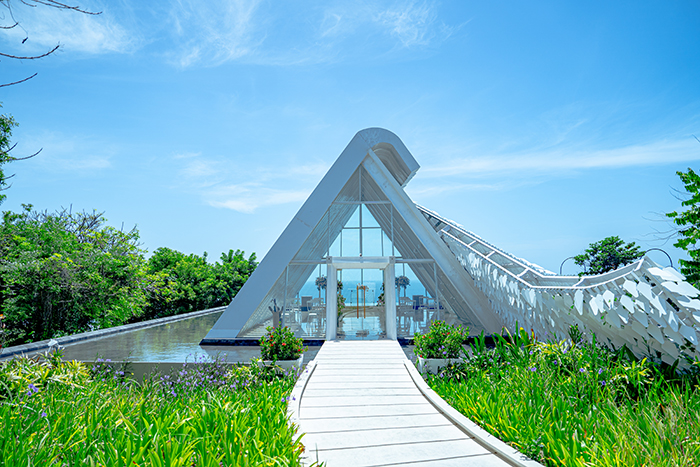 还有让我印象深刻的公区是Lohma水疗中心的建筑,一到这里就让人内心平静,自然光和人造光的融合以及线条感的建筑外观,在这里来一次疗愈绝对是你来巴厘岛度假的必备项目。还有一个是网红建筑是酒店的礼堂,是一个很适合婚礼举办的场所。