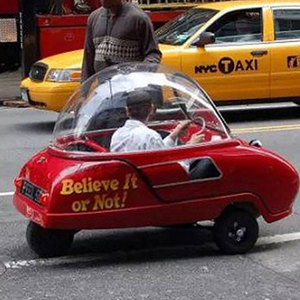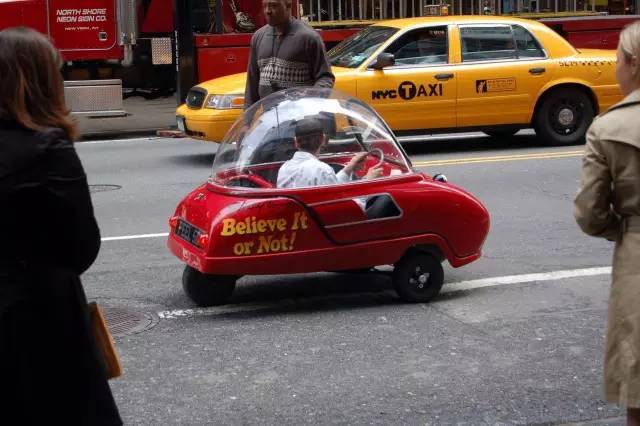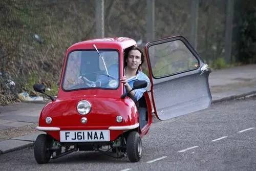 Peel P50,是吉尼斯世界纪录承认的世界上最小的量产车。Peel P50长1.34米、宽0.99米、高1.2米;重量仅59公斤。尽管Peel P50完全不符合当今的汽车安全标准,但英国法律却允许这款轻量级三轮小型汽车合法上路。