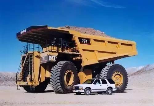 而它的兄弟和它相比有过之而无不及。卡特彼勒797有23英尺高,47.5英尺长,30英尺宽 ,发动机达到惊人的3400马力。翻斗能容360吨,但是惊奇的是,它的最快速度是40英里每小时。