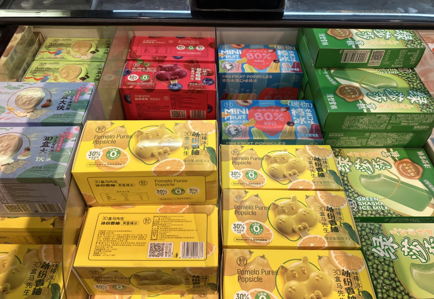界面新闻了解到,物美今年推出的良食记生巧雪糕,10支装售价22.9元。盒马自有品牌的生牛乳冰淇淋、绿豆老棒冰等单只价格在1.5-3.5元,此外,还有一些品牌为盒马消费者专门定制了专供口味,例如梦龙的生椰拿铁冰淇淋、光明mini小奶砖、伊利奇炫发财桶等。