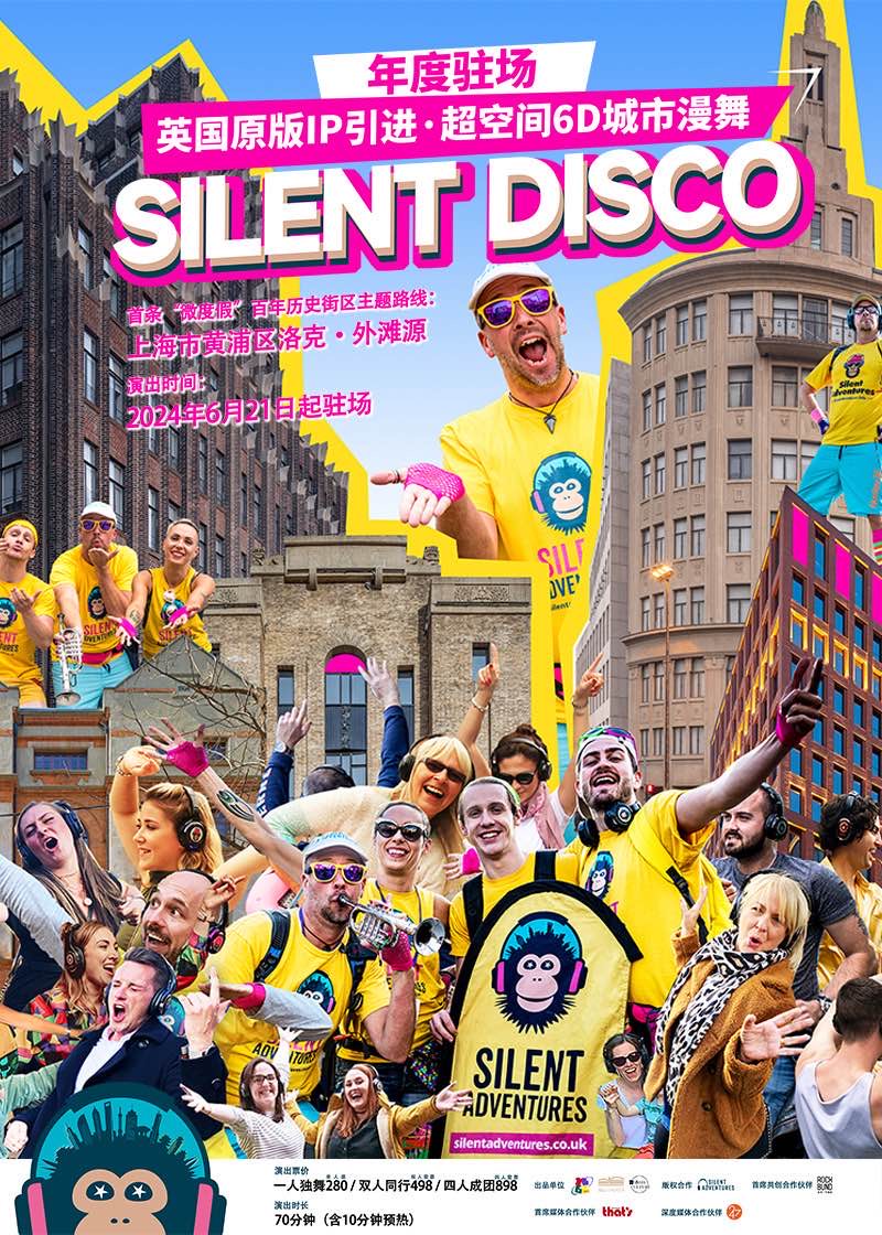 《Silent Disco》连续六年被评为爱丁堡边缘艺术节五星户外演出品牌,得到BBC Radio、《泰晤士报》和《卫报》等媒体一致好评。它结合了舞蹈艺术与时下最流行的city walk,参与者将在SG(silent guide)的组织下,分到无线耳机,在专属BGM中尽情舞蹈,在舞步中解锁城市的隐秘角落。
