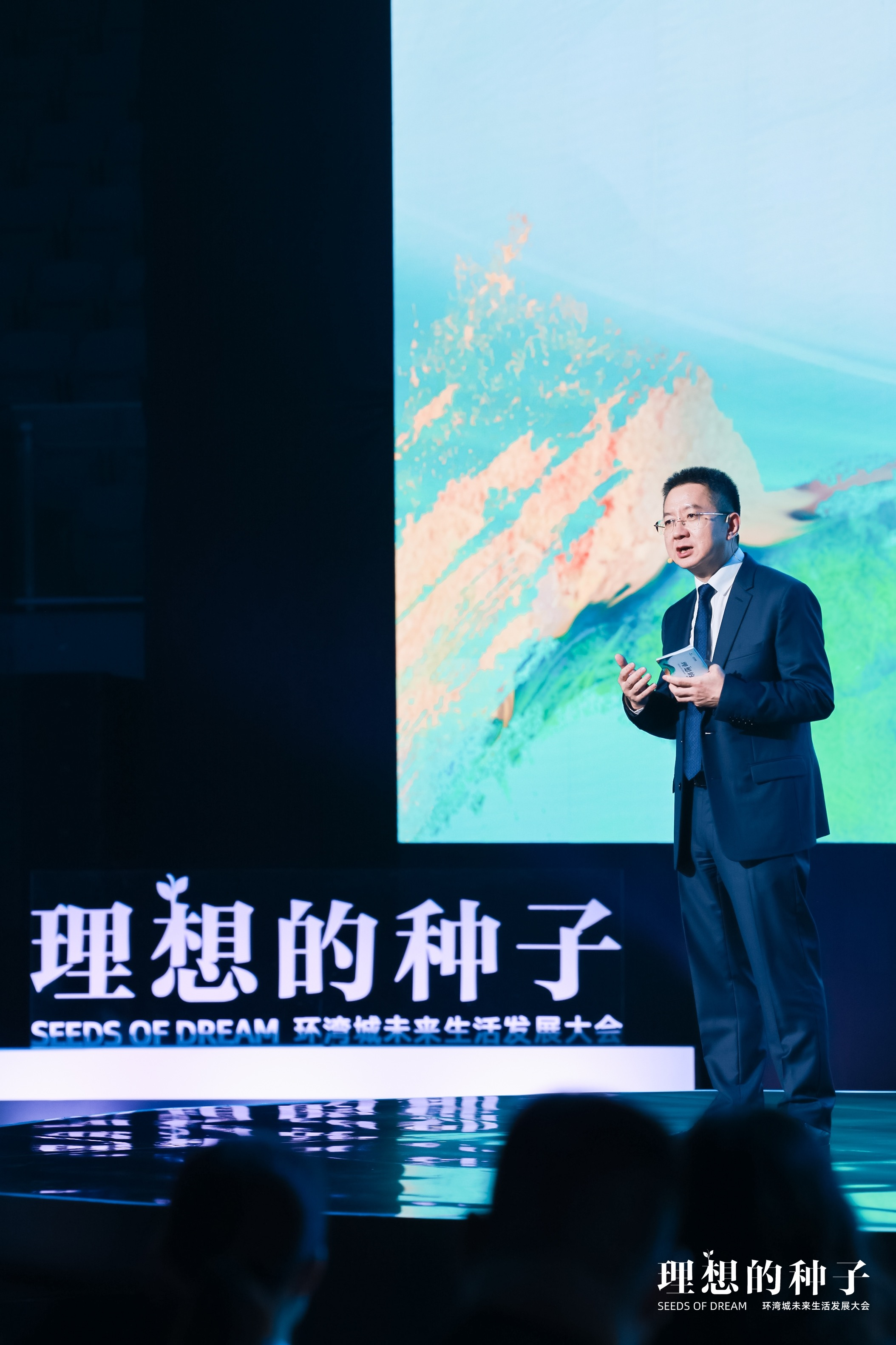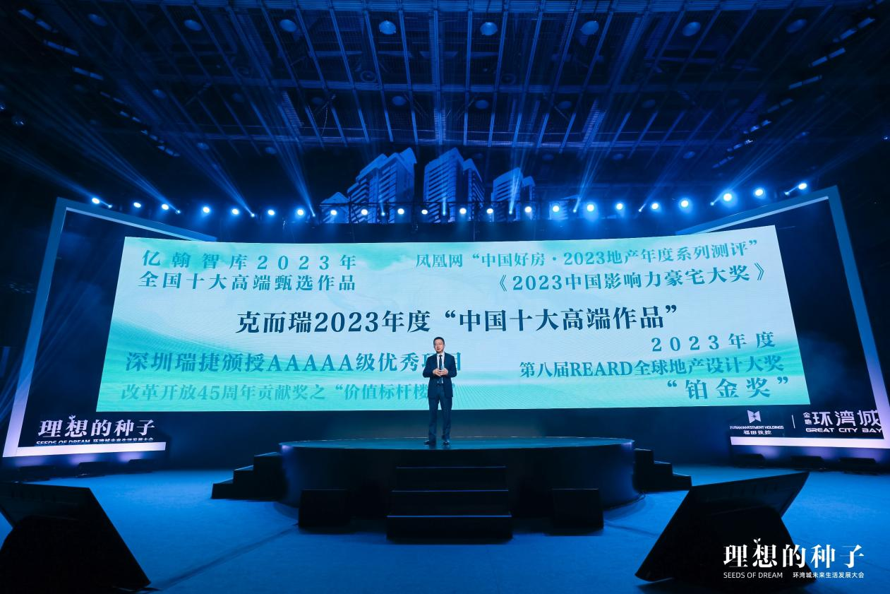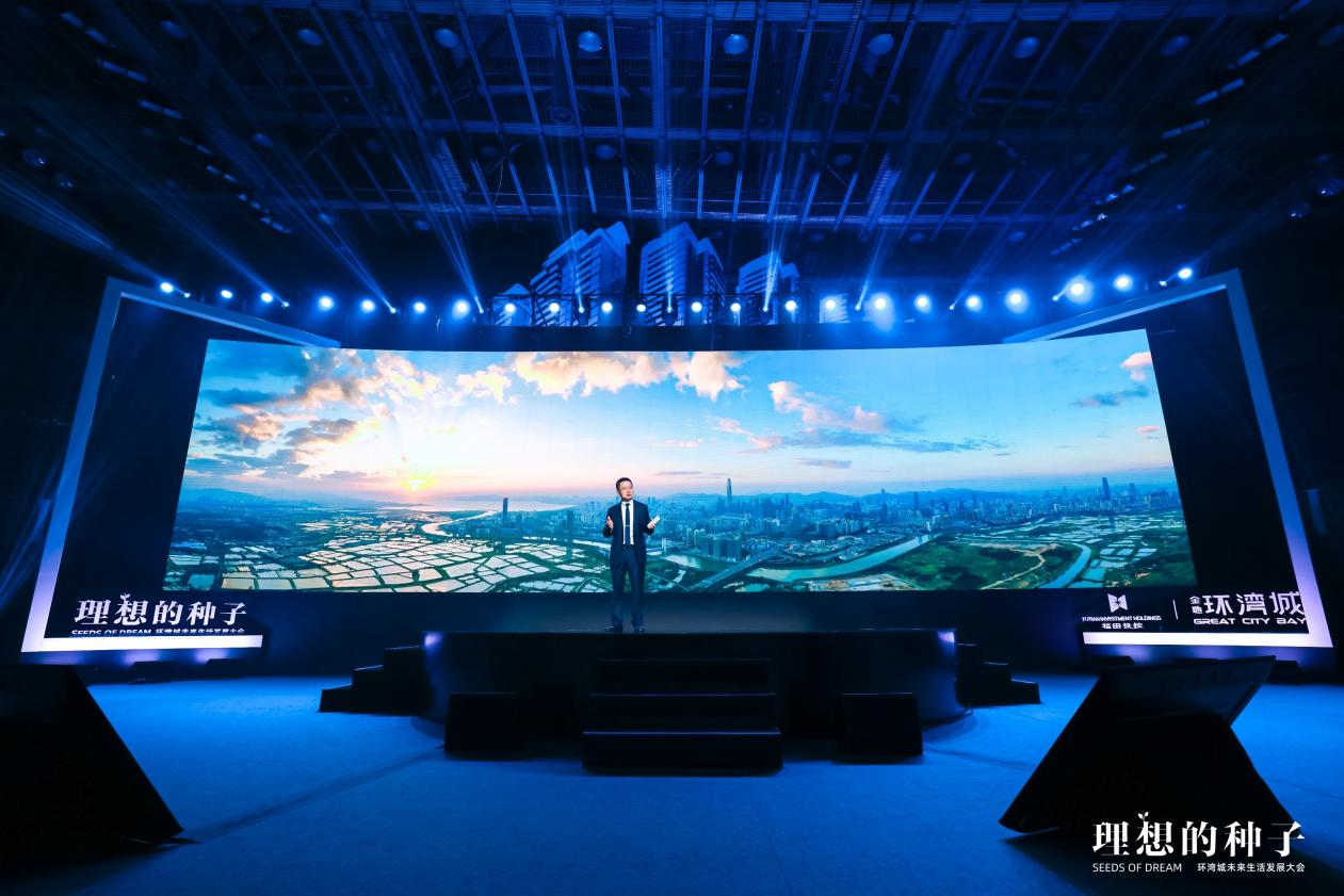 “理想之城 世界环湾”,作为“理想之夜”的重头戏,福田投控董事长、金地集团副董事长季彤以“一座理想主义者的百万大城”为题,讲述环湾城与深圳如出一辙的理想,展现理想之城的宏伟蓝图。