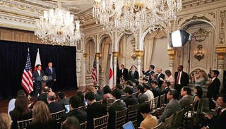 一周前,日本首相安倍晋三访美会见特朗普,白宫随行记者被“安顿”在附近一座窗户被黑色塑料膜覆盖的公寓。之后不久,另外一群人则在总统招待安倍的豪华晚宴上近距离见证了一场酝酿中的外交危机:朝鲜成功发射了一枚被视为意在挑战美日同盟的中程导弹。特朗普在宴间获悉事态进展,并当场拿起手机打电话给华盛顿方面,随后与安倍联合发布了简短声明。