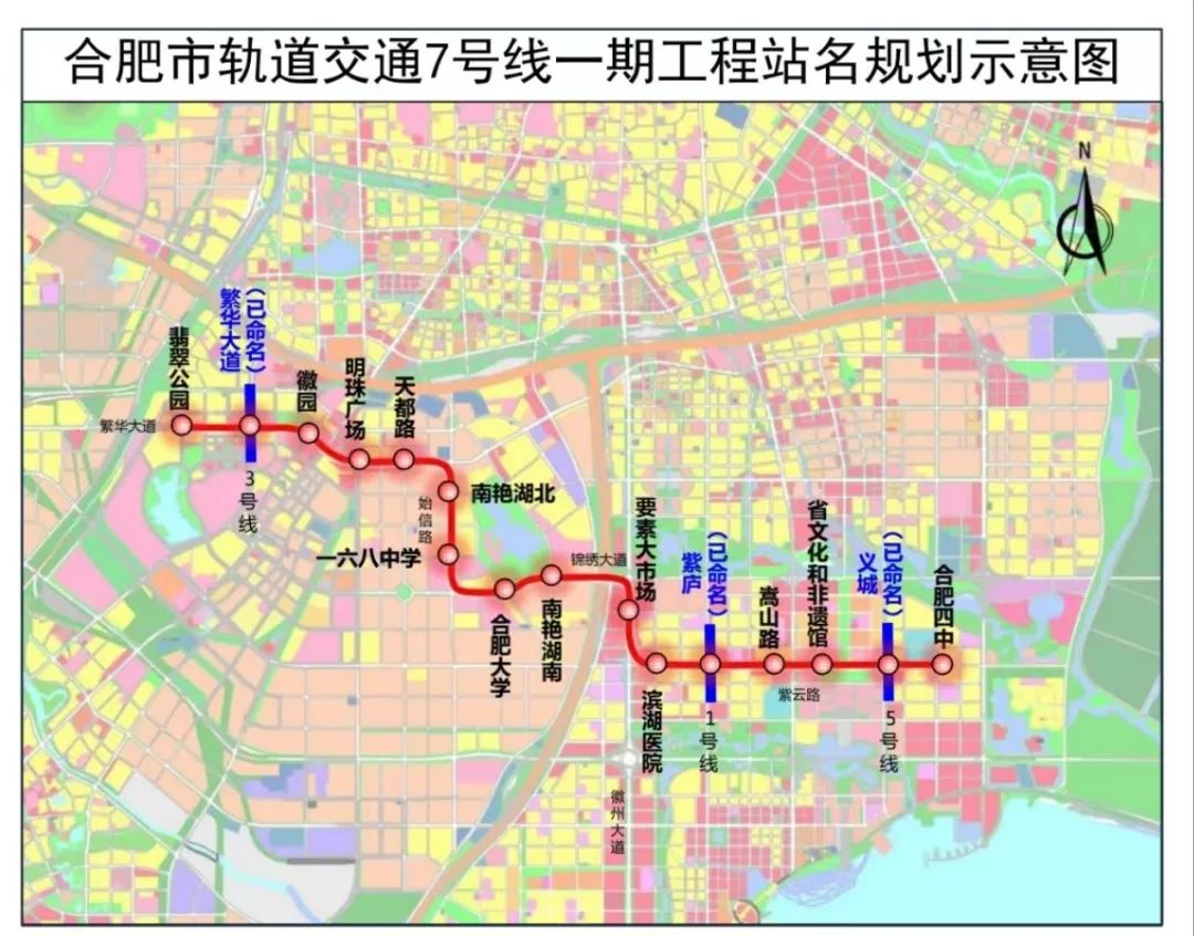 杏林、庐阳经开区、荷塘路、双凤、金梅路、梅冲湖、北城世纪城、双墩、省立医院北区、北城高铁站,车辆基地命名为北城车辆基地。