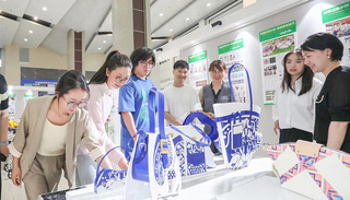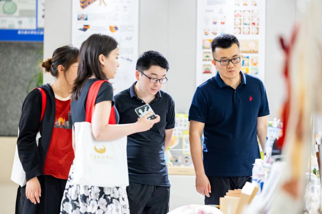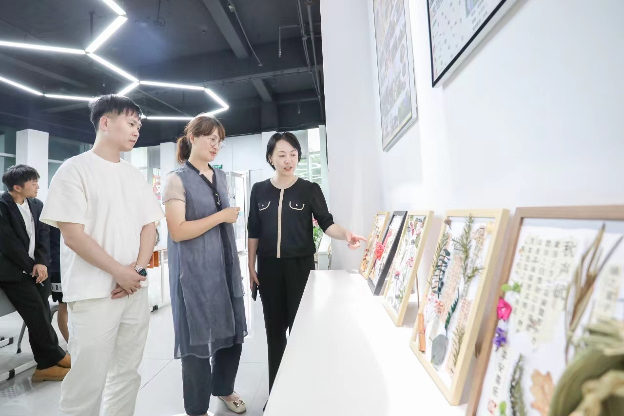 宁财院的这场毕业设计展还成了乡村书记们的“人才推介会”、“人才引进会”。“这就是大学生为我们村专门开发的团扇,很受游客们喜欢,非常赞!”在入口处展台前,甲村村党委书记朱军豪正高兴地向其他村书记介绍宁财院与他们校地合作结出的艺术硕果。“接下来赶紧来我们村里吧,我们也想要设计一套接地气、赶潮流的文创,做几个特色打卡点。”东钱湖镇绿野村妇女主任卓迎春一边津津有味地看着展示作品,一边拉着介绍展品同学的手,邀请他们来村大展身手。