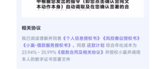 另外,有用户表示,小赢卡贷不仅收取会员费,利率还达到35.8%。据一位用户提供的小赢卡贷贷款界面显示,其综合年化成本为23.94%—35.99%。