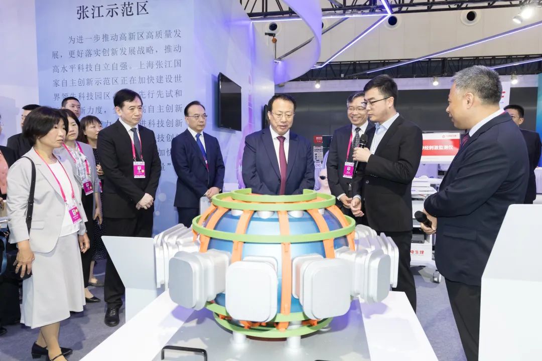 本届上交会由上海市人民政府主办,日本大阪市担任境外主宾城,浙江省担任境内主宾省。本届上交会6月12日至14日在世博展览馆举办,主题为“数链时代,绿动未来”,设置主题馆、能源低碳技术、数字技术、生物医药技术、创新生态及服务五大展区,展出面积3.5万平方米,汇聚10个国家和地区、国内19个省区市的创新成果,参展企业近千家。(摄影:张春海)
