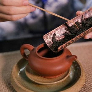 茶叶的冲泡有个常用茶水比例是1:50,也就是1克的茶叶,加50毫升的水(乌龙茶、紧压茶除外),这样就可以估算出你大概要加多少干茶。比方说,你手上的壶能装400毫升的水,那么差不多放8克的茶叶是比较合适的。