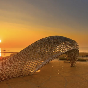 “荣耀之环”则是滴水湖金融湾的核心标志,一个直径153米的巨型圆环,外加4栋46米高的临湖商业大楼,总共供给了超89万平方米商业空间、7500多平方米市民文化场地和2.8万多平方米公共开放区域,串联滴水湖金融一期东西两侧核心功能区,象征着金融服务业态与各行各业紧密相连的合作模式。