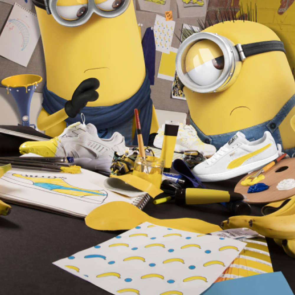 近日Puma宣布将与小黄人合作2017秋冬系列,该系列会在7月1日电影《卑鄙的我3》上映之前上市。官方发布的形象图上小黄人正在积极创作,图中出现了两款鞋分别是Puma Clyde 和Puma Disc Blaze,消息一经发布引来众多关注,不过官方目前仅发布了一张形象图,外界普遍猜测是小黄人的翻译还没有到位。