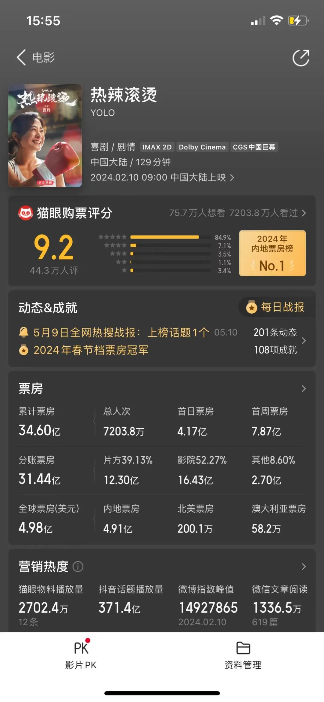 今年,行业中存在着一种声音,认为电影市场出爆款的难度越来越大,创作者不了解观众意图,辛辛苦苦拍出来的电影没人看,不赔钱能持平就不错。但是,我们在这样的大环境下仍然看到,《热辣滚烫》一部电影票房斩获36.6亿,《飞驰人生2》的票房33.9亿,这些票房爆款又是怎么制造出来的呢?