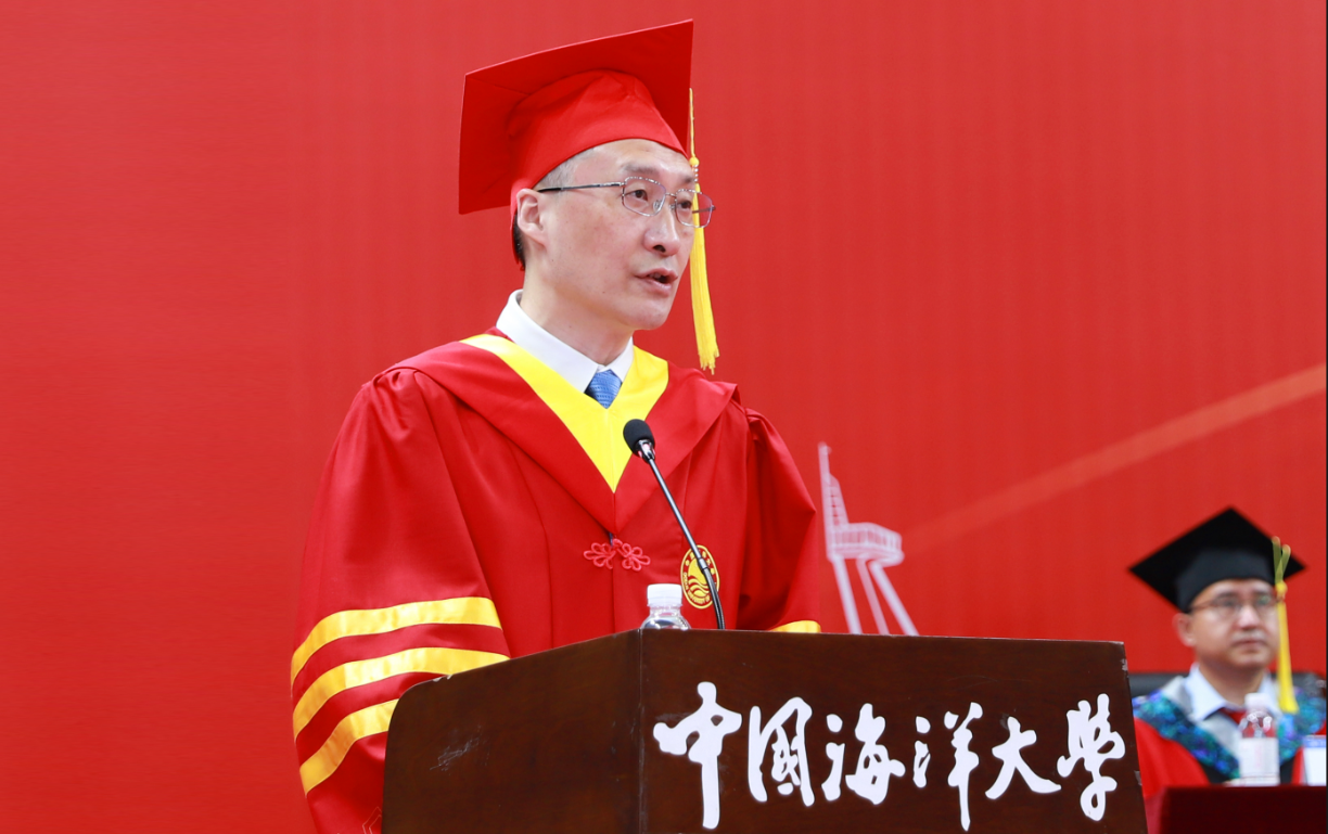 张峻峰表示,在学校建校100周年之际,同学们即将开启新的征程。面向未来,希望同学们赓续世纪海大精神、勇担强国建设使命。要牢记创校宗旨,始终“应国家需要”,厚植家国情怀,夯实精神根基;要牢记价值追求,始终“崇尚学术”,追求真理,点亮人生智慧;要牢记校训精神,始终“取则行远”,脚踏实地,铸就进步阶梯。期待毕业生们从世纪海大的精神文化中源源不断地汲取奋进力量,勇敢接过强国建设、民族复兴的历史接力棒,一起弘扬海大精神,继往开来、踔厉奋发,共同为强国建设、民族复兴作出无愧于时代的新的更大贡献。