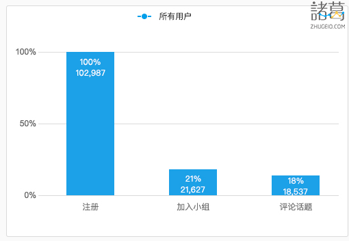 在这个漏斗中,你将跟踪用户从注册之后,是如何一步步到达「评论话题」(参与交流)的: