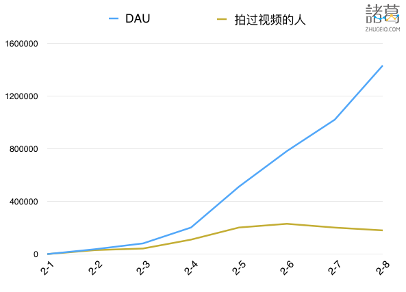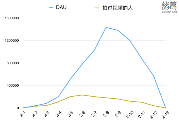 看起来非常棒不是吗?但接下来查看诸葛io后台数据我们看一下,把实际拍过视频的人数加进来会发生什么:
