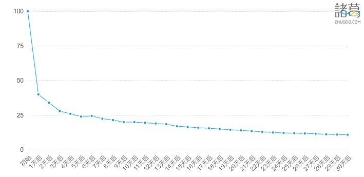 有一件关于移动应用的事实:用户会非常快的流失,实际上平均下来,移动应用70%的用户会在一天后流失,但那些非常优秀的应用的这个值只有30%。但是,在安装应用后的第3天开始,再往后,流失速率会趋于稳定:所有应用会以同样的流失速率失去他们的用户。