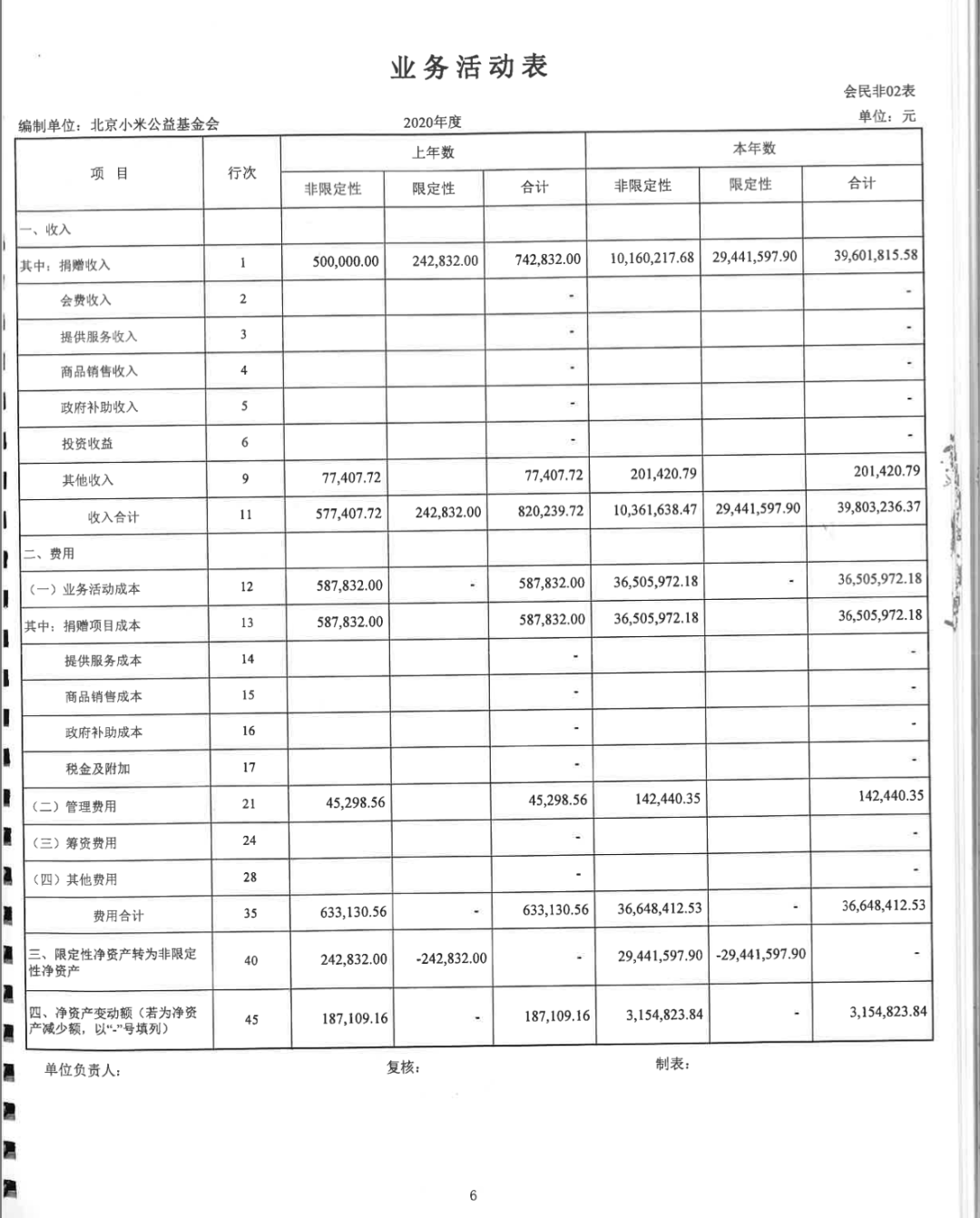 摘自:《北京小米公益基金会2020年度审计报告》,中证天通会计师事务所(点击“阅读原文”获取完整审计报告)