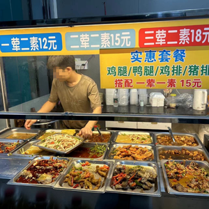 另一家为“城市飯堂大排档部”,门店面积约30平米,主打半自助式米饭快餐。该店的工作人员告诉红餐网,店内的老火汤、白米饭、粥水均为免费提供,还免费提供两份素菜,仅收荤菜的钱。单拼荤菜12元,双拼荤菜16元,三拼荤菜20元,“一杯奶茶钱足以吃饱喝足。”