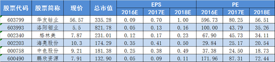 华友钴业(603799.SH)主要专注于钴新材料深加工以及钴、铜、镍有色金属采、选、冶。公司十年深耕刚果市场,目前控制的矿山有MIKAS公司的KAMBOVE尾矿、NIMURA矿,及PE527采矿权,合计控制钴储量超过7万吨。公司钴产品产能高达2万吨(折合金属量),2015年国内市场占有率25%,全球占有率14%。