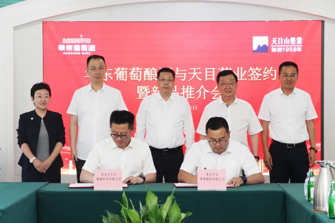 6月25日,青岛华东葡萄酿酒有限公司与青岛天目山健康科技有限公司战略合作协议签约仪式在华东百利酒庄举行。青岛市政协副主席、崂山区委书记张元升,崂山区委常委、统战部部长、副区长李维波,崂山区委常委、办公室主任栾兴纲,崂山风景名胜区管理局副局长张树人以及青岛天目山健康科技有限公司、青岛饮料集团相关领导出席签约仪式。