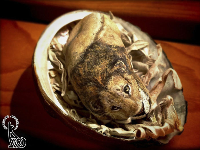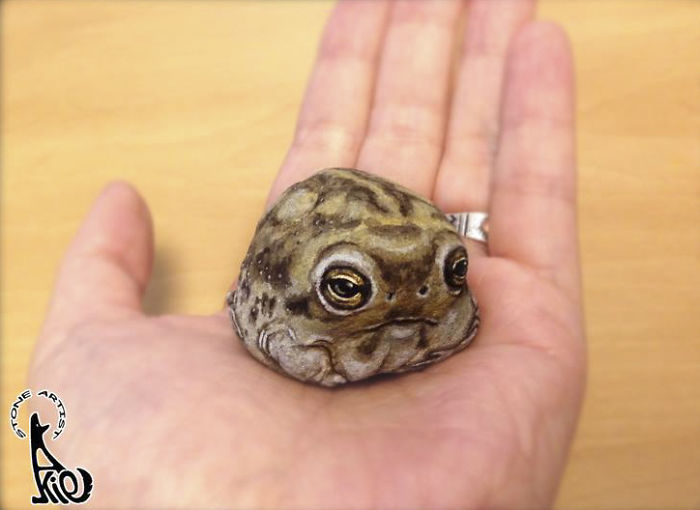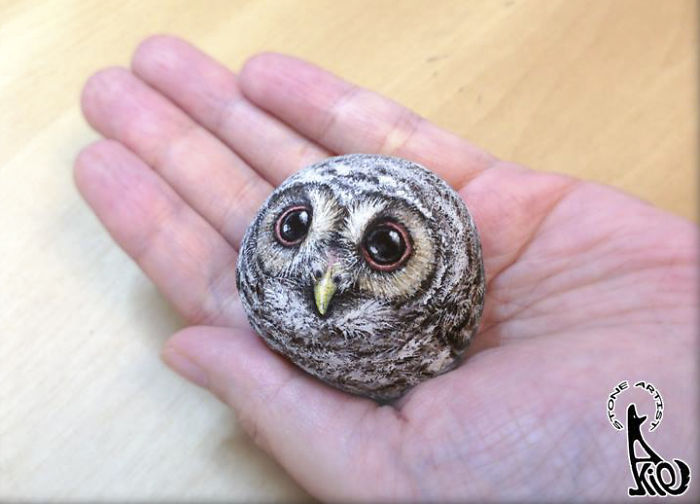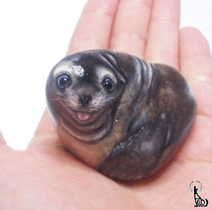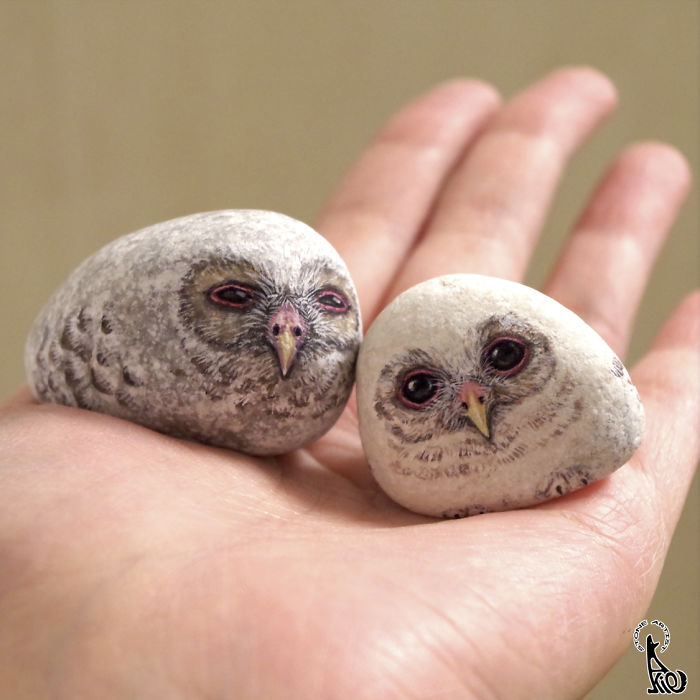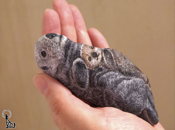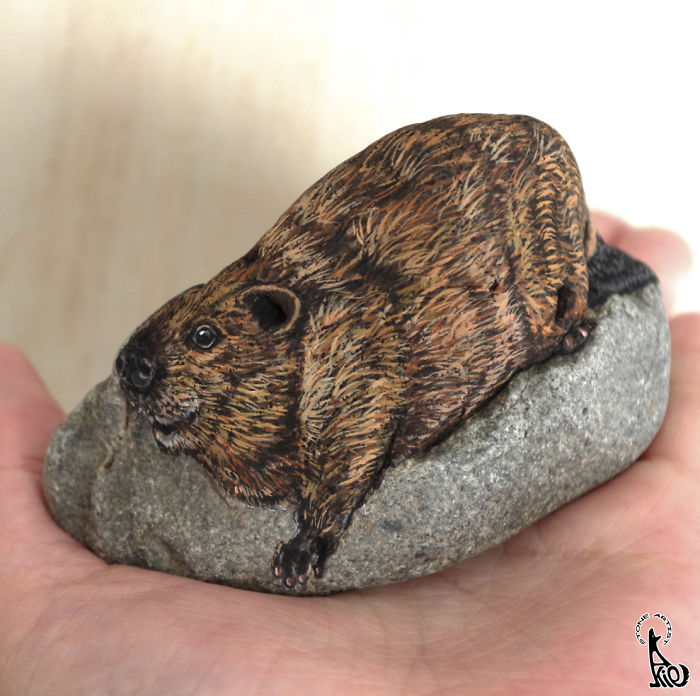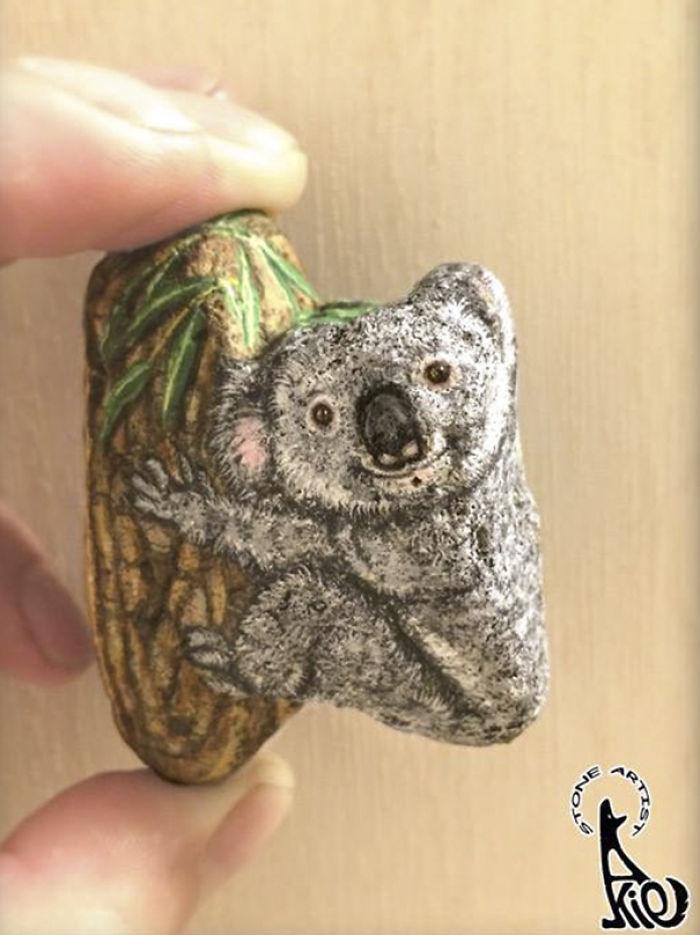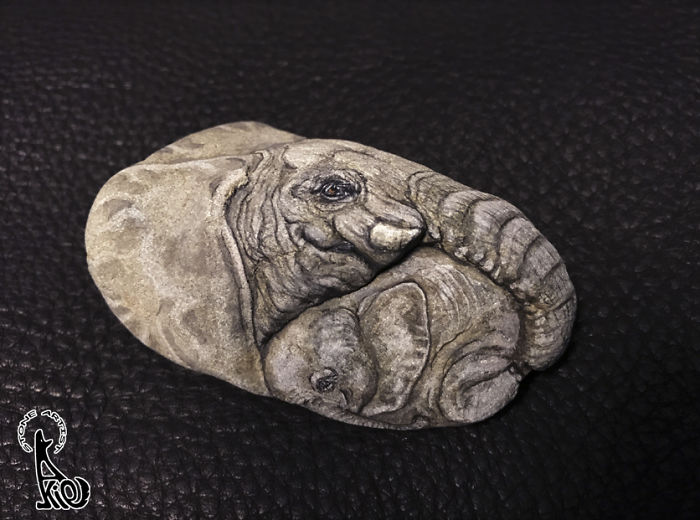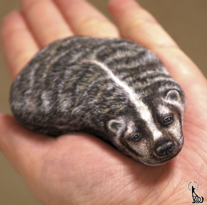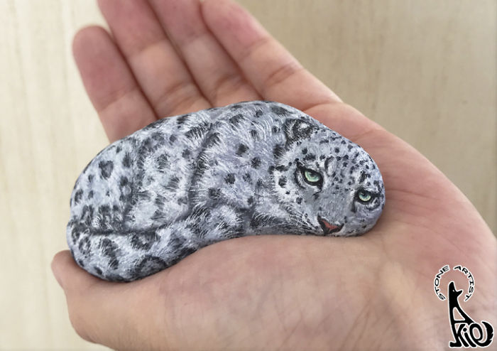 对我而言,石头并不像油画布那般,是简单用于作画的材料。河边有着数不清的石头,那些外形像动物的小石头总能吸引我的目光。当我找到一块合适的石头,我感觉那块石头也找到了我。每一块石头都有着自己的独特造型,故而我把和它们的相遇,看作是它们的允许,允许我把它们画成我眼中的它们。