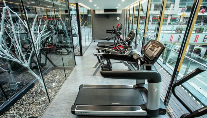 美中不足的是这个健身舱内的空间略显拥挤,摆下几台设备和划出一些锻炼的空地后,几乎没有了多余的空间,来来往往中,我还是不得不几次停下来为其他用户让出一条路。此外,健身舱的外墙有一部分是玻璃,在锻炼的过程中,我总有一种在面向路人直播健身的感觉。