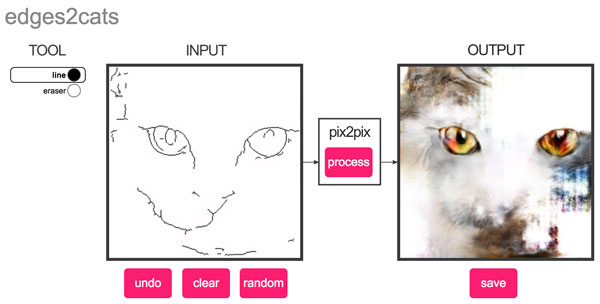 跟几年前的谷歌深梦画图差不多,这个叫edges2cats的猫图生成器,也是机器深度学习的成果。