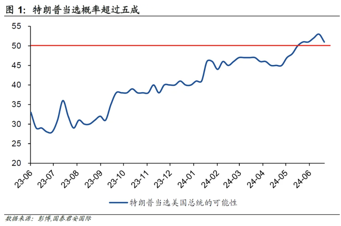 (文章仅代表作者观点。文章首发于作者微信公号“ 国君海外宏观研究”,原标题《特朗普领先“预热”大选交易》。责编邮箱:yanguihua@jiemian.com。)