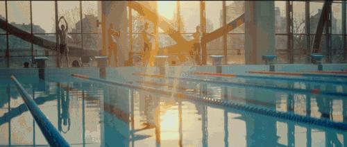 还有在游泳场上准备时的景象,金色的阳光透过玻璃窗洒进来,好唯美的画面~