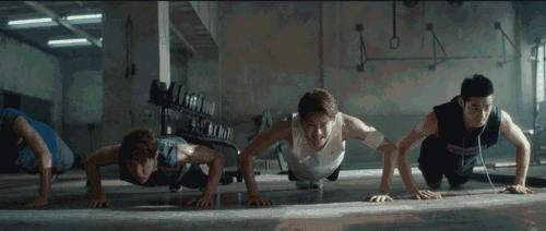魔鬼式的训练,不是一般人还真坚持不住~老公表情都狰狞了~要不然人家怎么会成为穿衣显瘦脱衣有肉的男神嘞~
