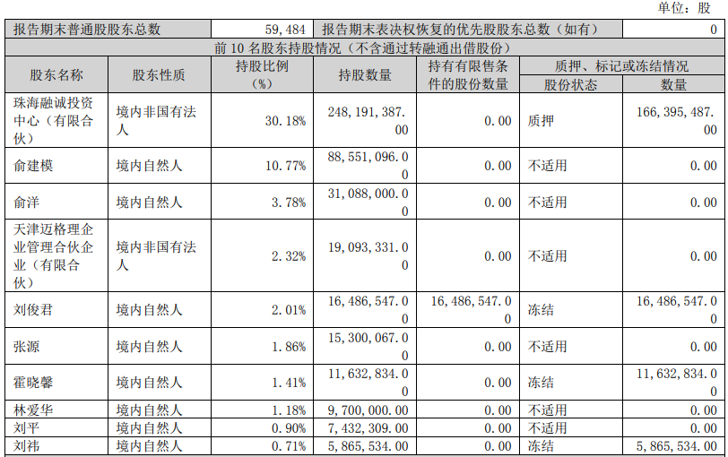 *ST美吉披露,截至2024年6月28日,珠海融诚共持有公司股份248,191,387股,占公司股份总数的30.18%。其中,通过普通证券账户持有公司股份166,395,487股,占其所持有公司股份总数的67.04%,占公司总股本的20.24%;通过招商证券股份有限公司客户信用交易担保证券账户持有公司股份81,795,900股,占其所持有公司股份总数的32.96%,占公司总股本的9.95%。