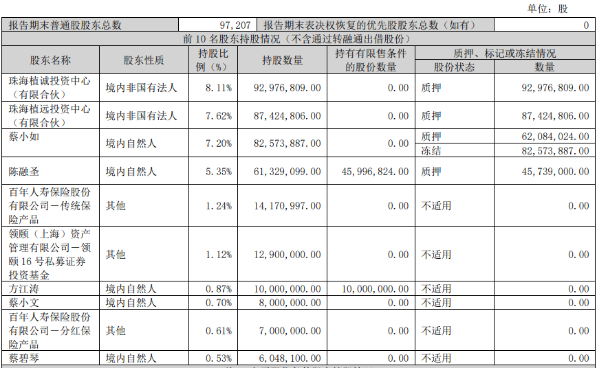 截止公告日,达华智能股东珠海植诚持有公司股份数量为92,976,809股,占公司股份总数的8.11%。其一致行动人珠海植远持有公司股份数量为87,424,806股,占公司股份总数的7.62%,珠海植诚及珠海植远合计持有公司180,401,615股股份,占公司总股本的15.73%,累计被质押的股份数量为180,401,615股,占其所持公司股份总数的100%,占公司总股本的15.73%。