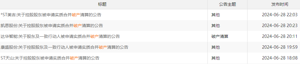 *ST美吉6月28日深夜公告称,控股股东珠海融诚投资中心(简称“珠海融诚”)被申请实质合并破产清算。截至2024年6月28日,中植集团管理人提出的实质合并破产清算申请能否被北京一中院受理、上述248家企业是否进入合并破产清算程序尚存在不确定性。