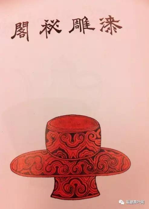 宋代盏托多木制,大概取其隔热与轻便。从辽墓壁画来看,茶托施漆,且常以红黑二色。“漆雕”是一种工艺。南宋时期,漆雕中有一种工艺称为“剔犀”,是用两种或三种色漆在器物上有规律地逐层积累起来,至相当厚度,趁漆未干是用刀剔刻出云钩、香草等图案花纹,在刀口断面上可以看见不同的色层。从《茶具图赞》中的盏托图来看,布满黑白相间的云纹,是一件漆雕盏托。盏托以漆雕故姓“漆雕”。秘阁指尚书省,又可指皇家藏书馆。阁、搁同音,故爵以秘阁。盏托以承搁茶盏,方便端用,故名承之,字易持,号古台老人。